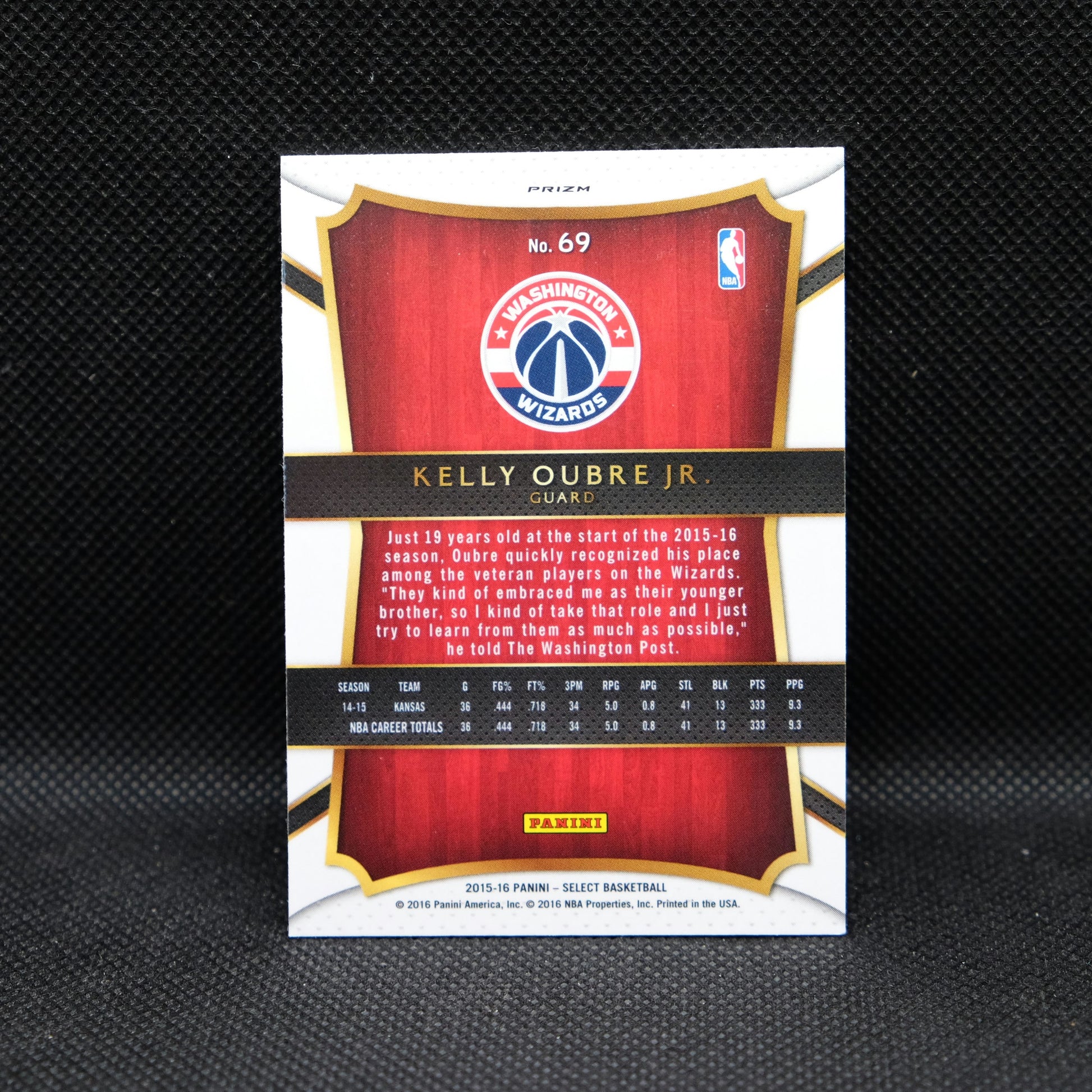 2015-16 Kelly Oubre Jr. Select #69 Tri Color Prizm Rookie Card