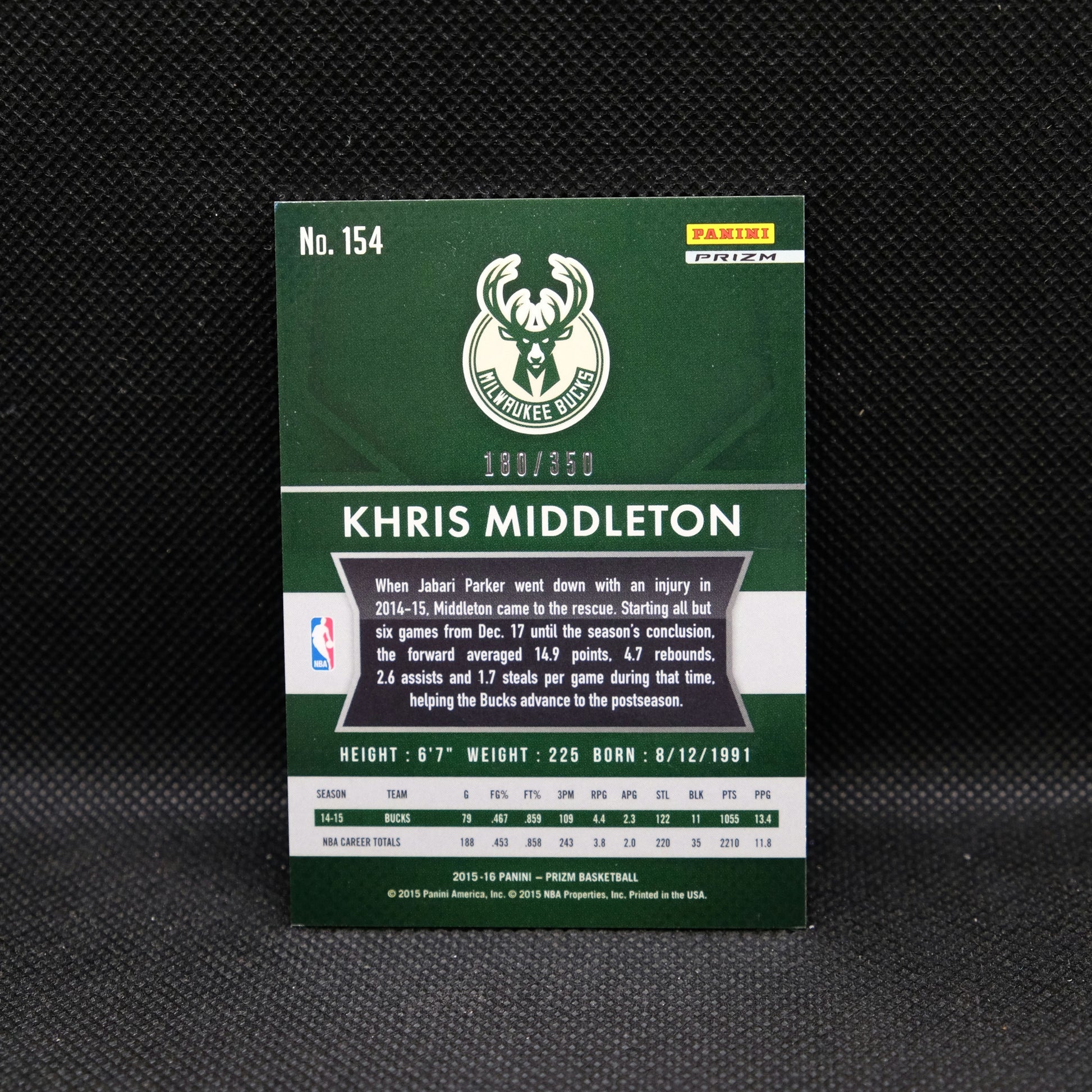 2015-16 Khris Middleton Prizm #154 Red Wave Prizm /350