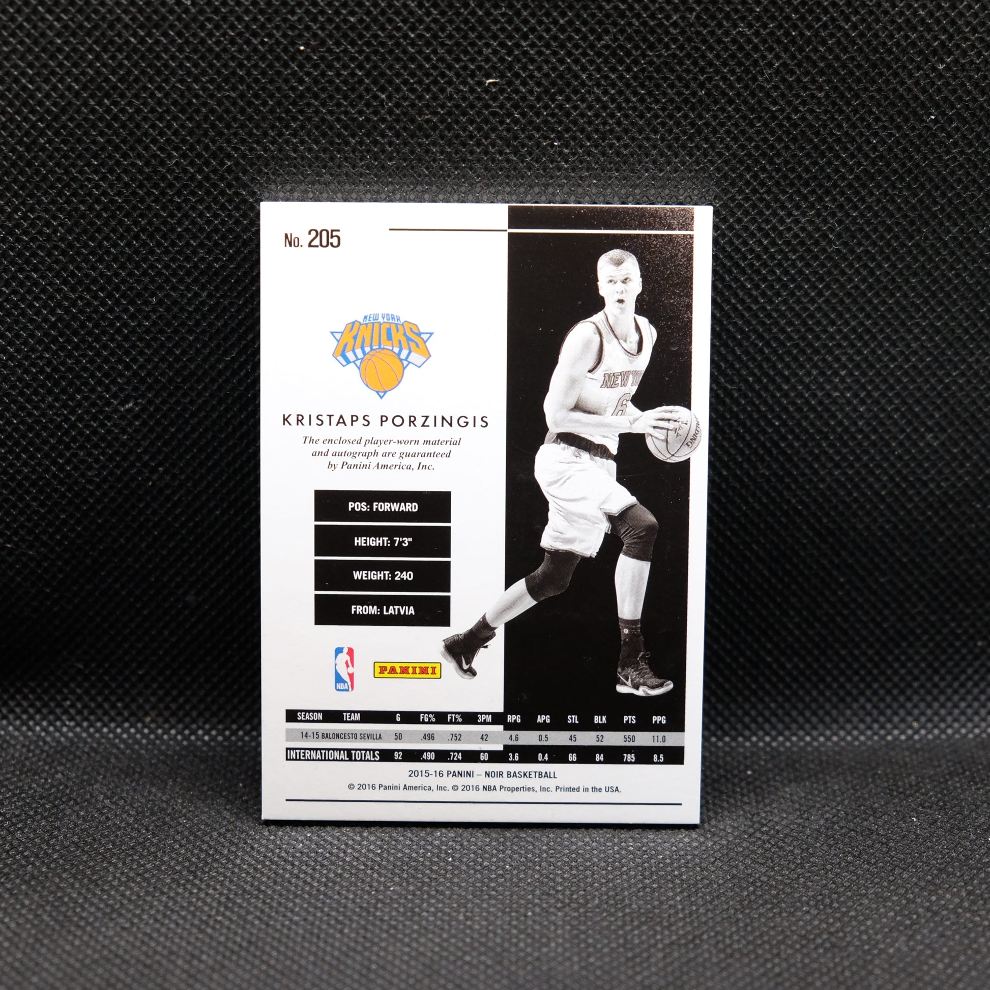 2015-16 Kristaps Porzingis #205 Noir Rookie Patch Auto /99