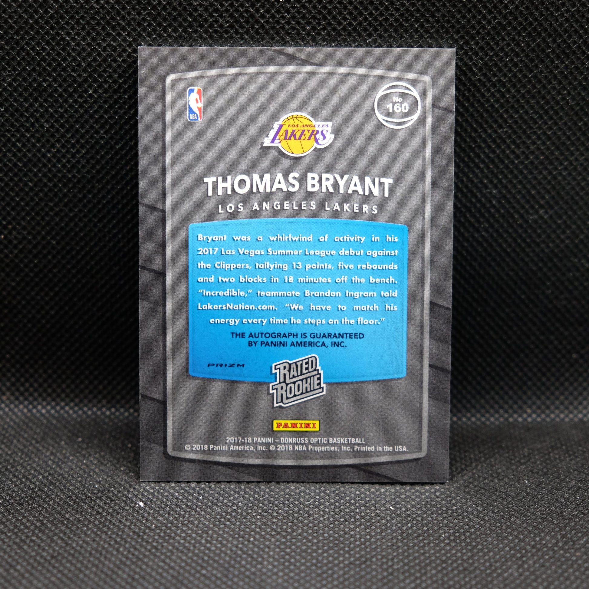 2017-18 Thomas Bryant Donruss Optic Rated Rookie Fast Break Prizm Autograph