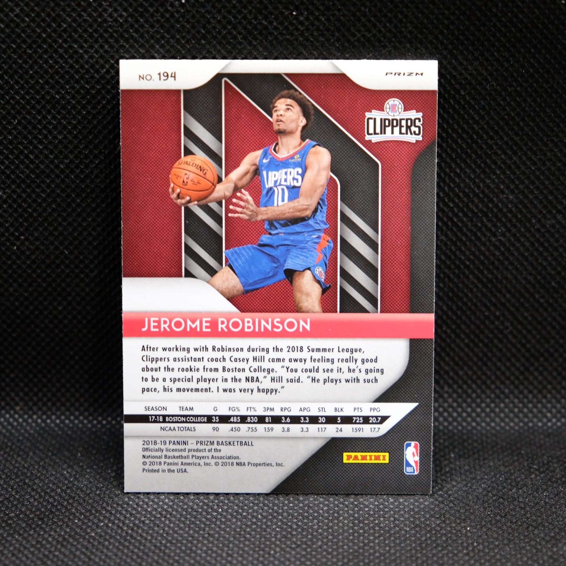 2018-19 Jerome Robinson Prizm #194 Silver Prizm Rookie Card