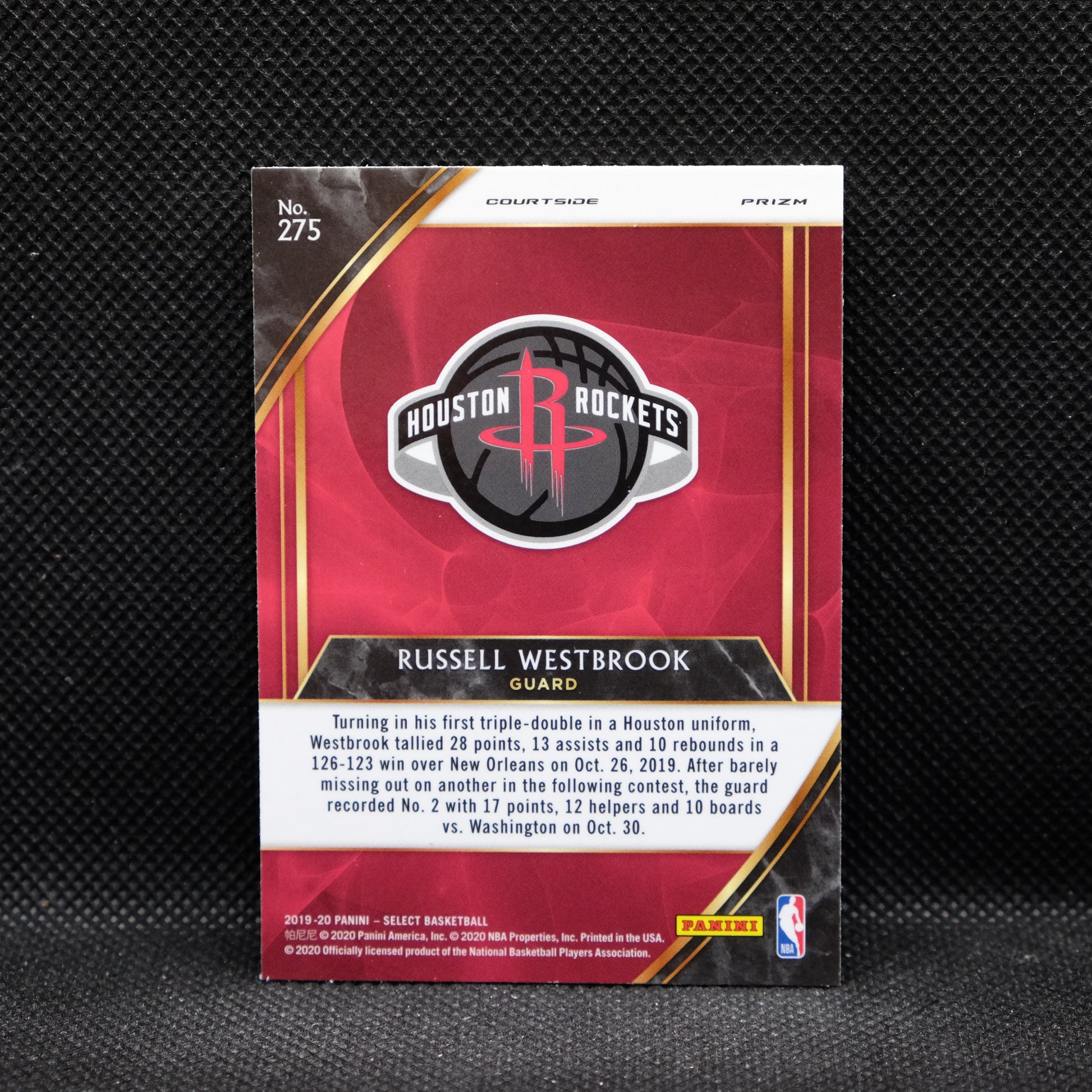 2019-20 Russell Westbrook Select #275 Courtside Gold Prizm
