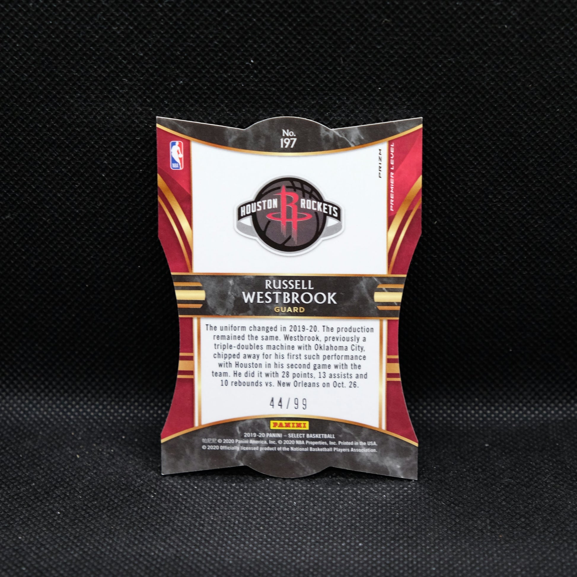 2019-20 Russell Westbrook Select Premier Level Purple Die Cut Prizm /99