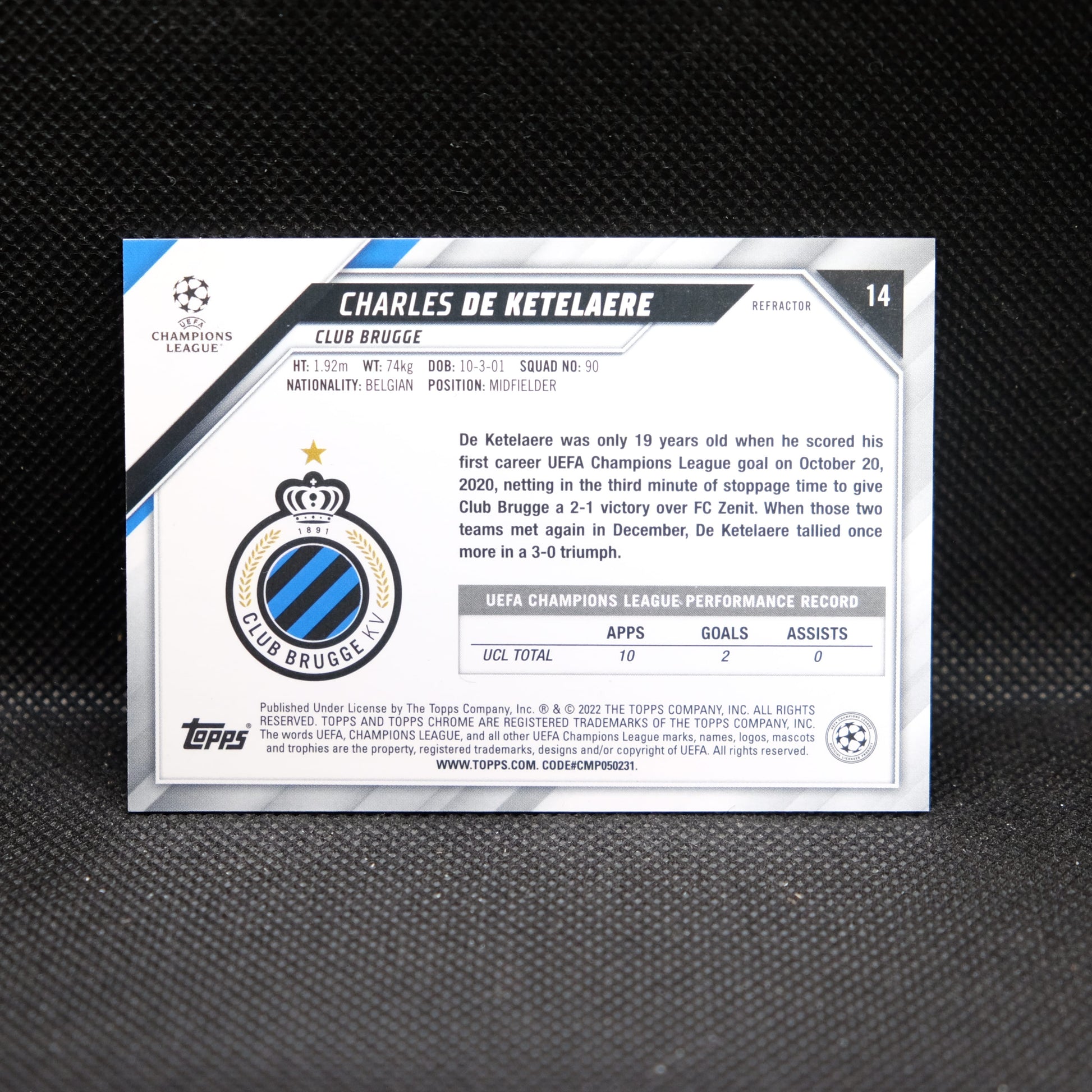 2021-22 Charles De Ketelaere Topps Chrome UEFA UCL #14 Silver Refractor